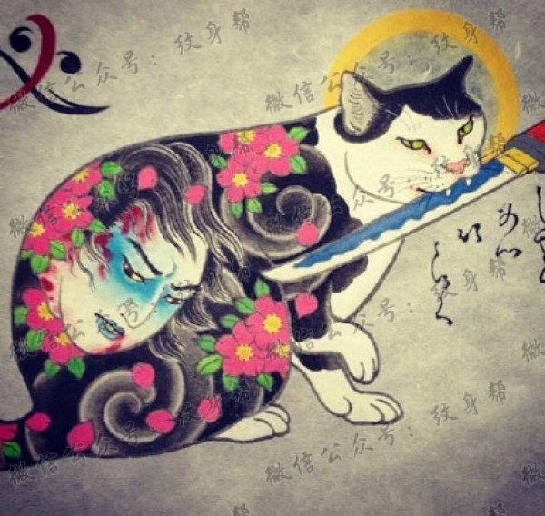 一组纹身的猫纹身手稿图案素材