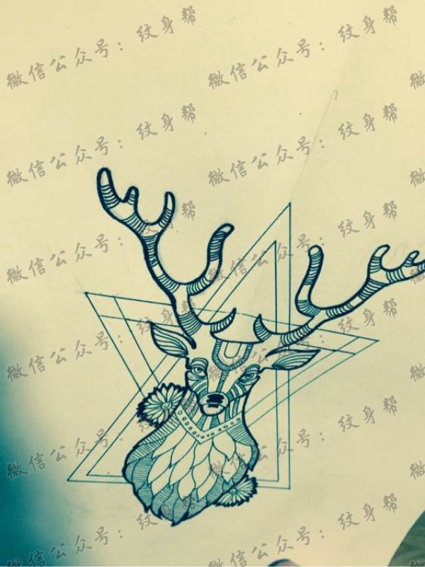 一组11张麋鹿头纹身手稿素材图片