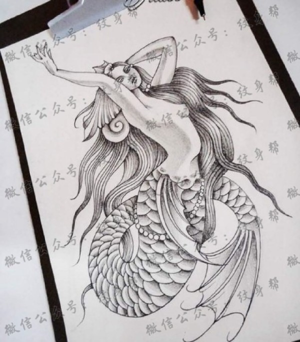一组20张美人鱼纹身手稿素材图片