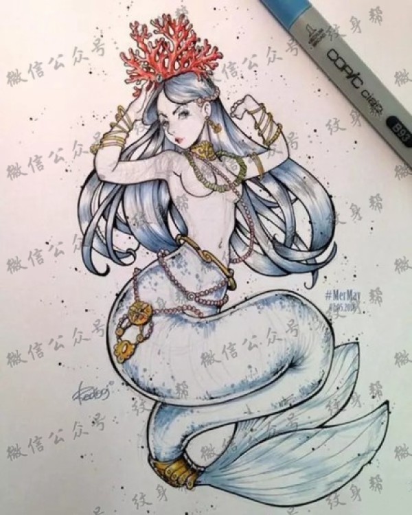 一组20张美人鱼纹身手稿素材图片
