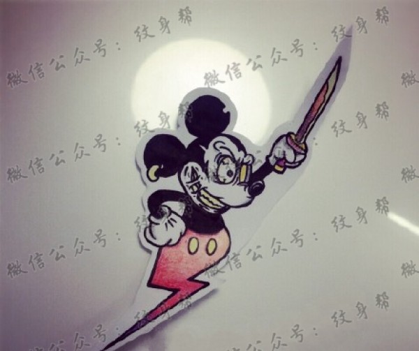 一组10张米老鼠纹身手稿素材图案