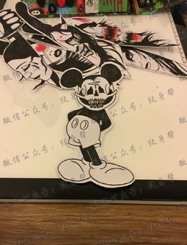 一组10张米老鼠纹身手稿素材图案