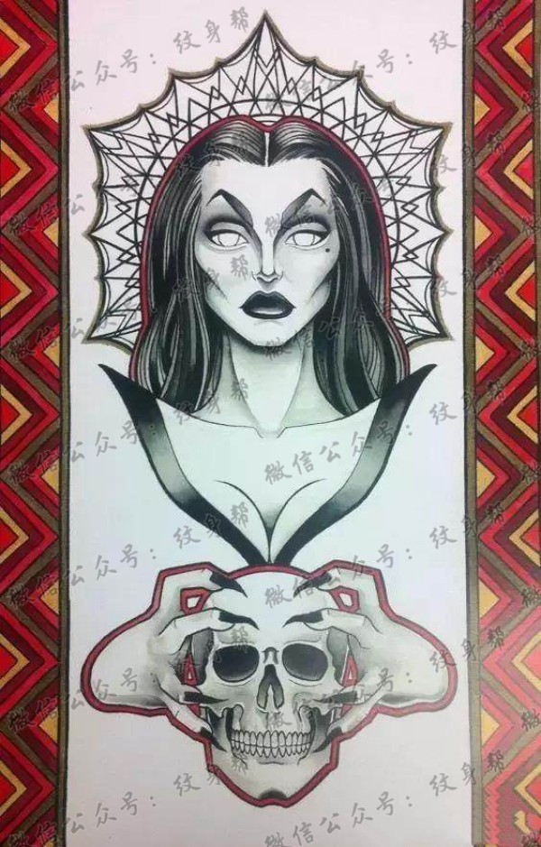 传统艺妓般若纹身图案手稿