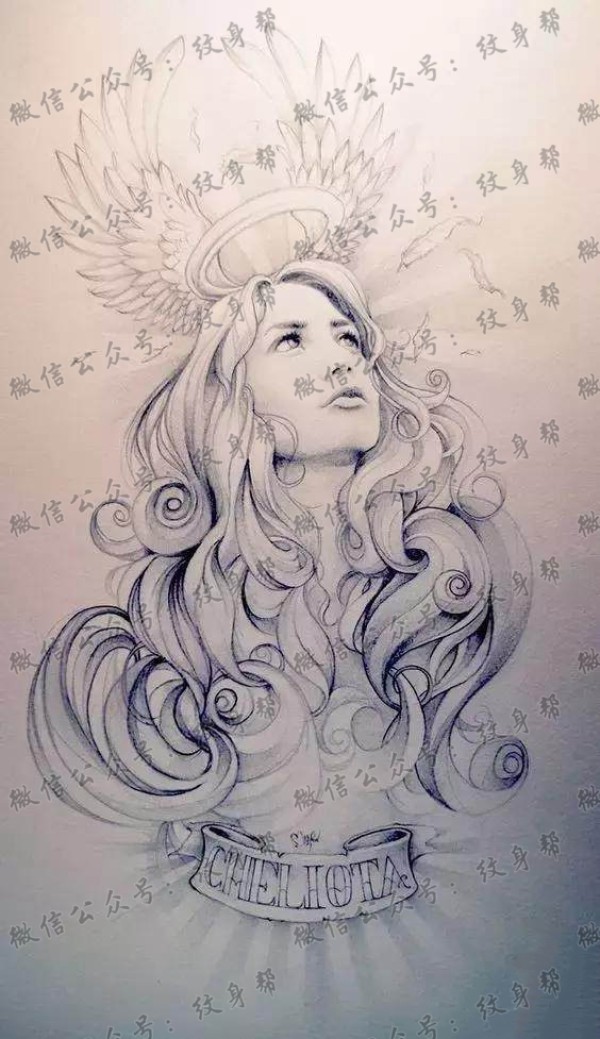 一组19张欧美美女肖像纹身手稿图案