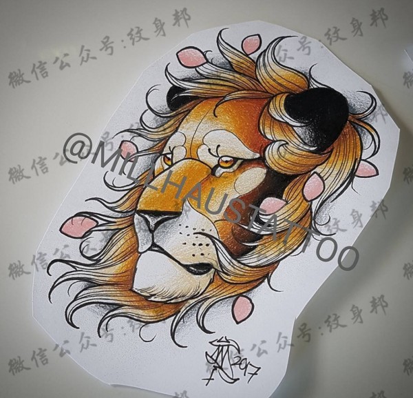 半甲唐狮手稿 传统的9款唐狮主题半甲纹身手稿图片