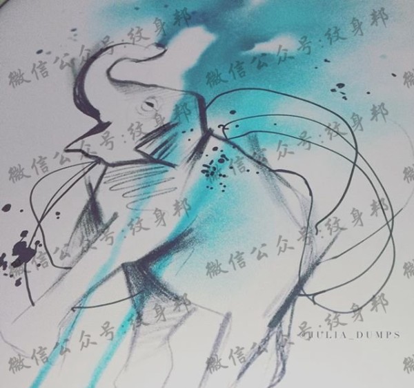 大象线条纹身手稿