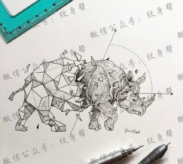 一套9张碎片风几何动物纹身手稿图案