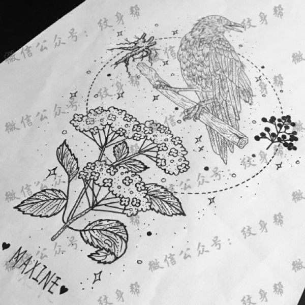 女生喜爱的简单手绘纹身图案来自于纹身师安雅