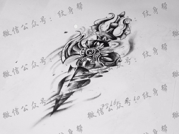 半甲唐狮手稿 传统的9款唐狮主题半甲纹身手稿图片