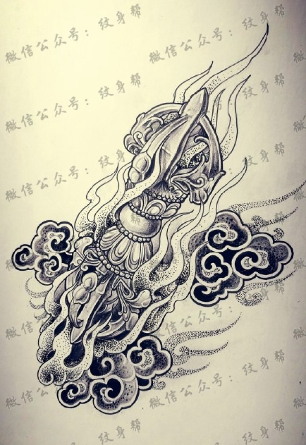 半甲唐狮手稿 传统的9款唐狮主题半甲纹身手稿图片