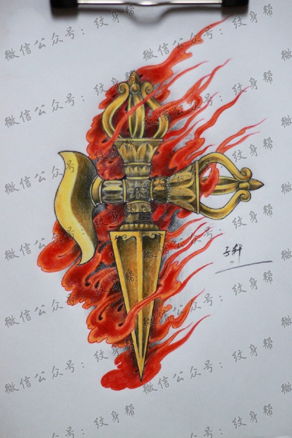 一组20张降魔杵纹身手稿图案素材