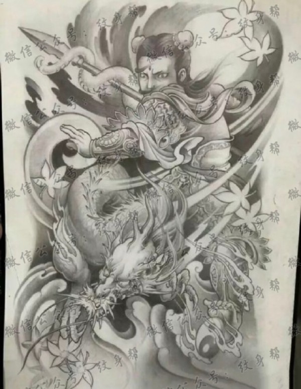一组满背大气九龙拉棺纹身图案作品和手稿