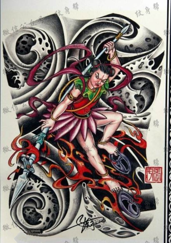 一套10张哪吒纹身手稿图案素材