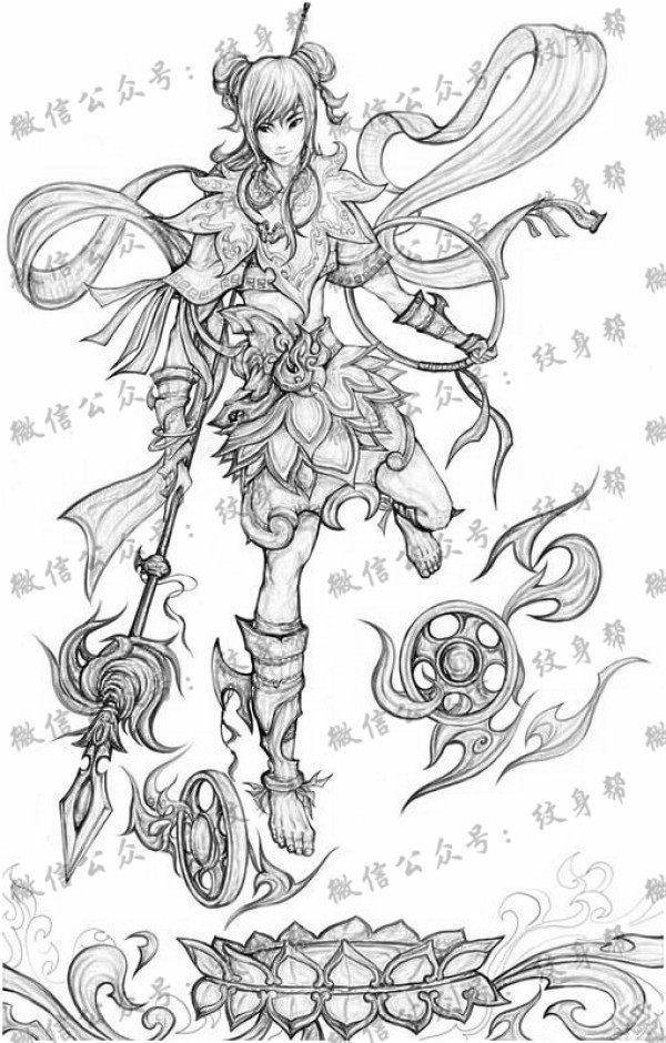 半甲唐狮手稿 传统的9款唐狮主题半甲纹身手稿图片