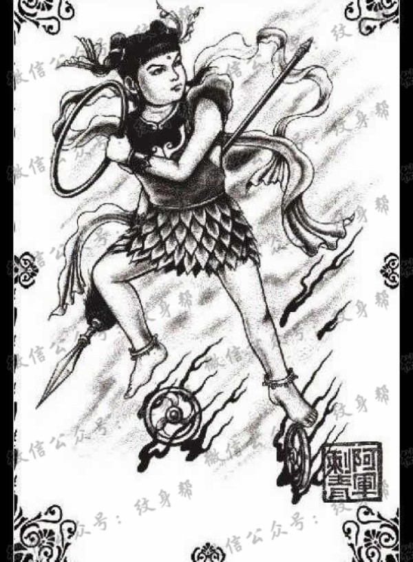 一套10张哪吒纹身手稿图案素材