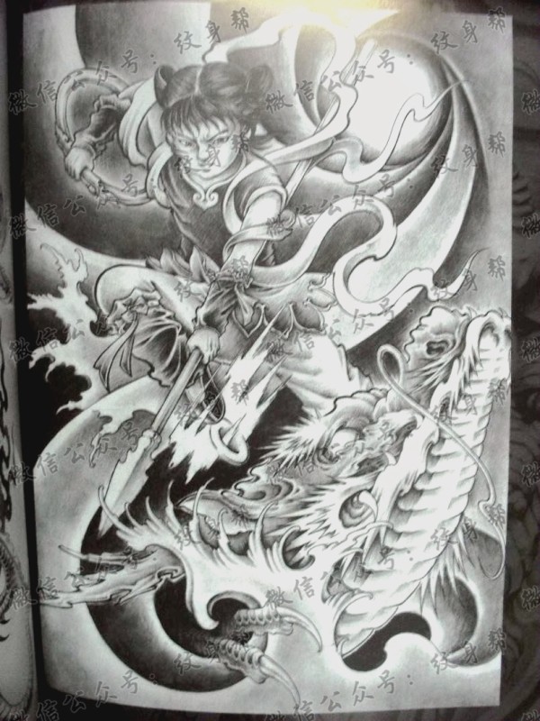 一套10张哪吒纹身手稿图案素材