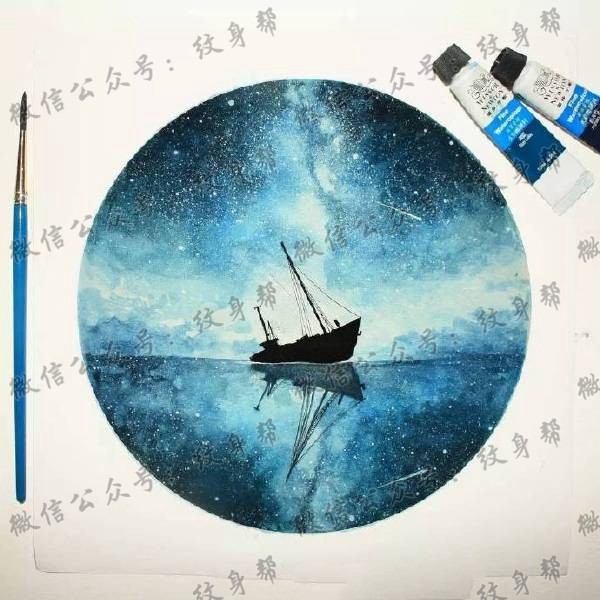 一套9张星空星球纹身手稿素材图案