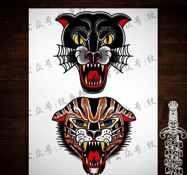 彩色豹子头+狮子头纹身手稿