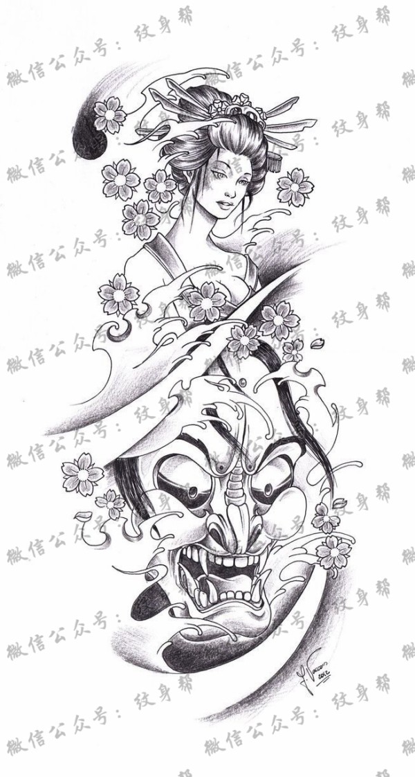 纹身艺妓手稿图 一组柔美迷人的纹艺妓纹身手稿