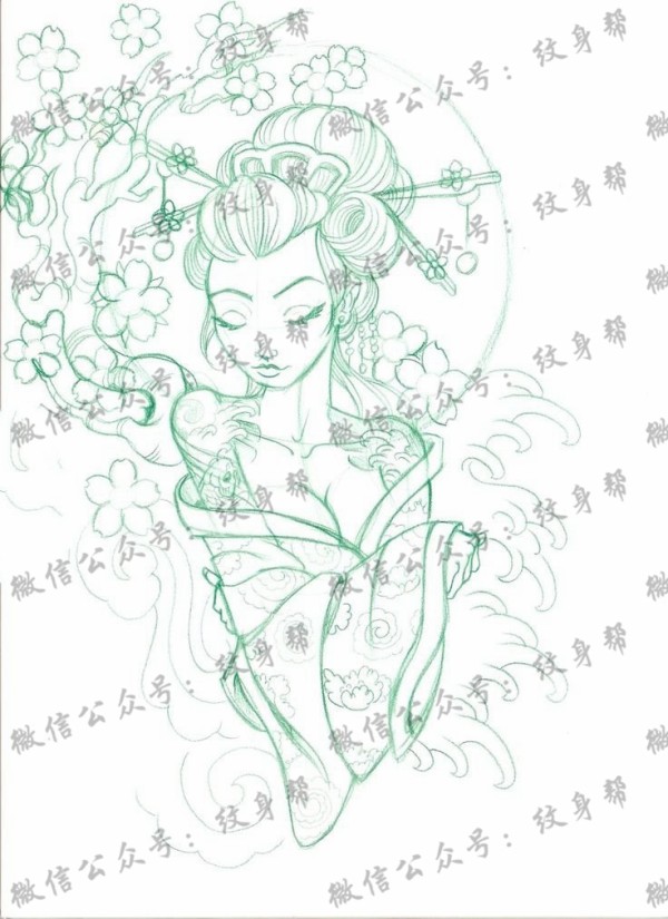 纹身艺妓手稿图 一组柔美迷人的纹艺妓纹身手稿
