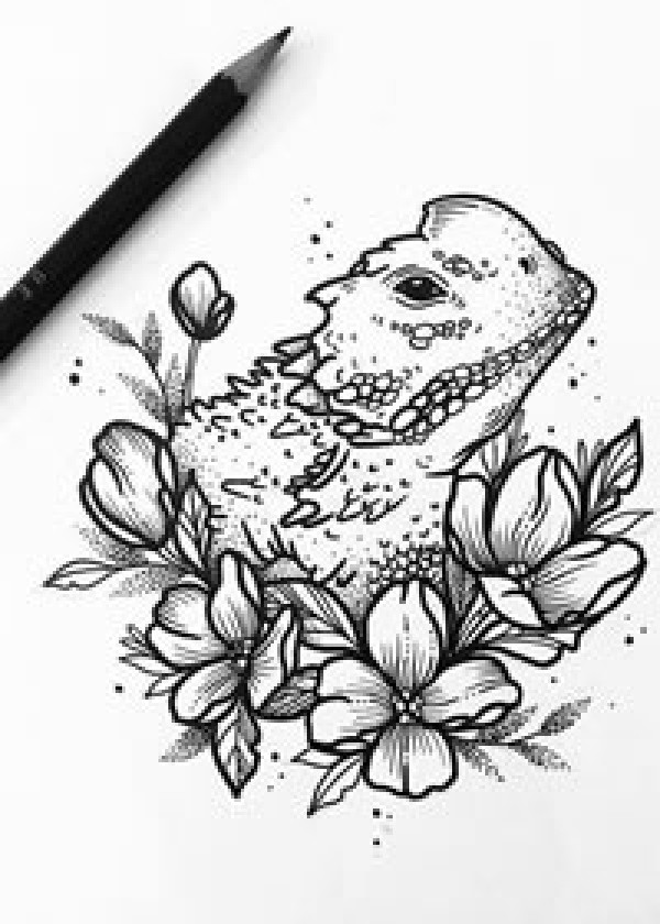 线条花卉头部纹身手稿
