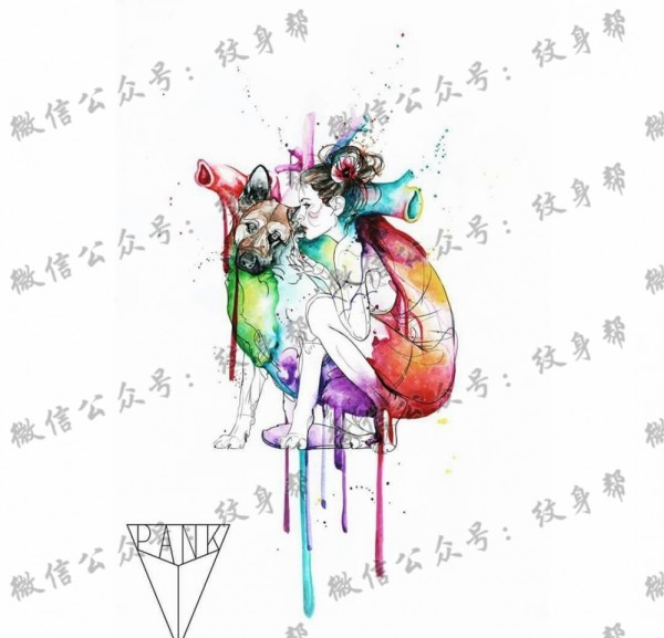 女孩色彩狗纹身手稿