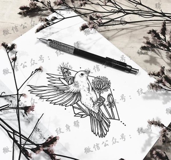 线条小鸟纹身手稿