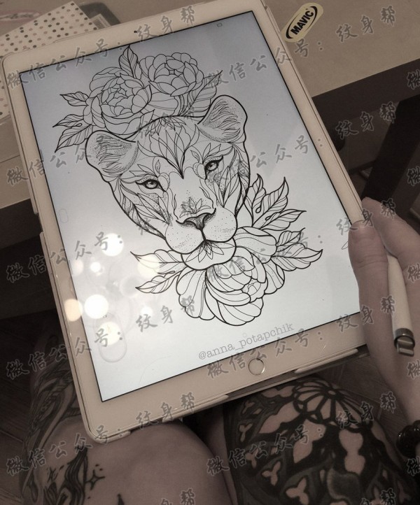 半甲唐狮手稿 传统的9款唐狮主题半甲纹身手稿图片