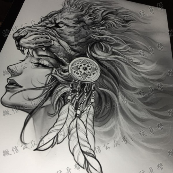 半甲唐狮手稿 传统的9款唐狮主题半甲纹身手稿图片