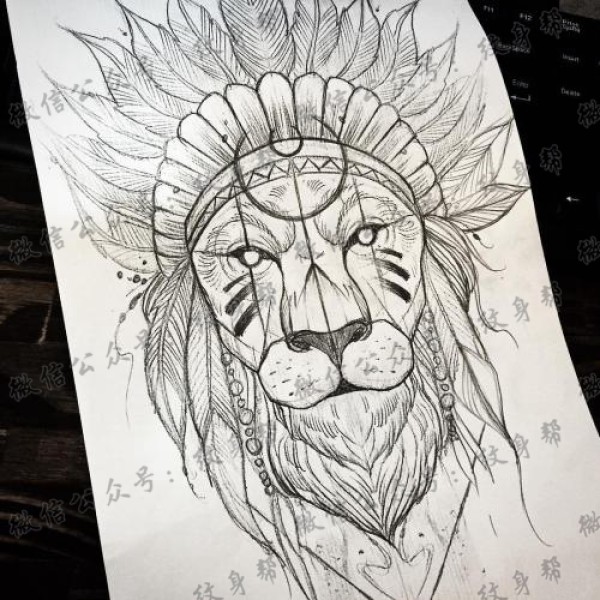 半甲唐狮手稿 传统的9款唐狮主题半甲纹身手稿图片