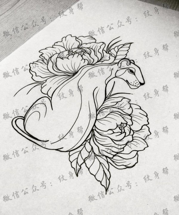 豹子花手稿纹身图案