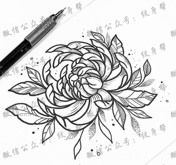线条菊花纹身手稿