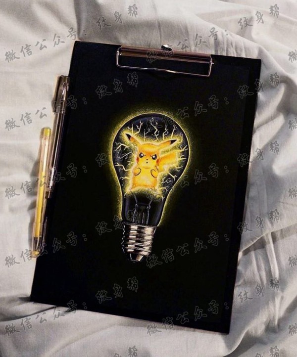 灯泡皮卡丘纹身手稿