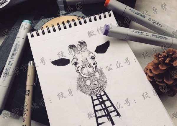 点刺鹿头梯子纹身手稿
