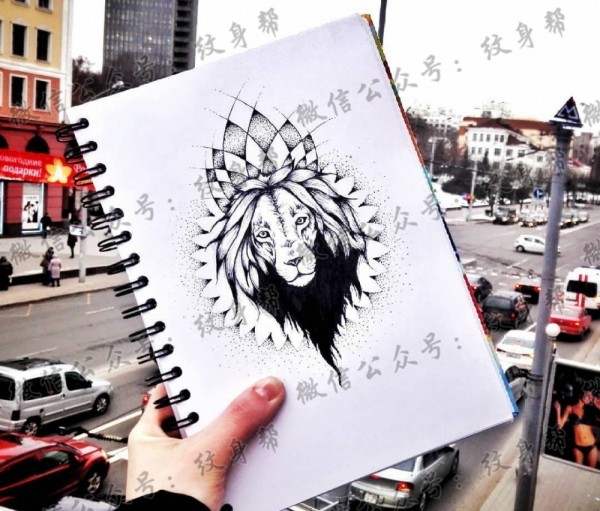 半甲唐狮手稿 传统的9款唐狮主题半甲纹身手稿图片
