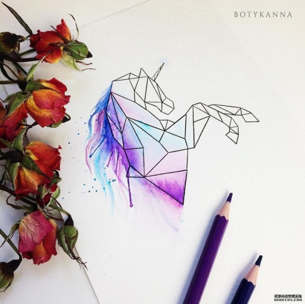 色彩几何独角兽纹身手稿