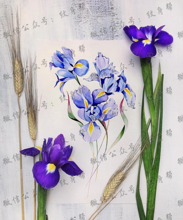 色彩兰花纹身手稿