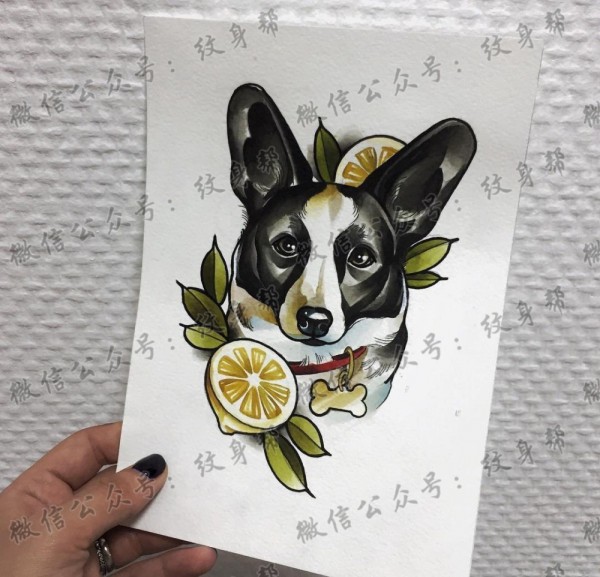 色彩狗狗纹身手稿