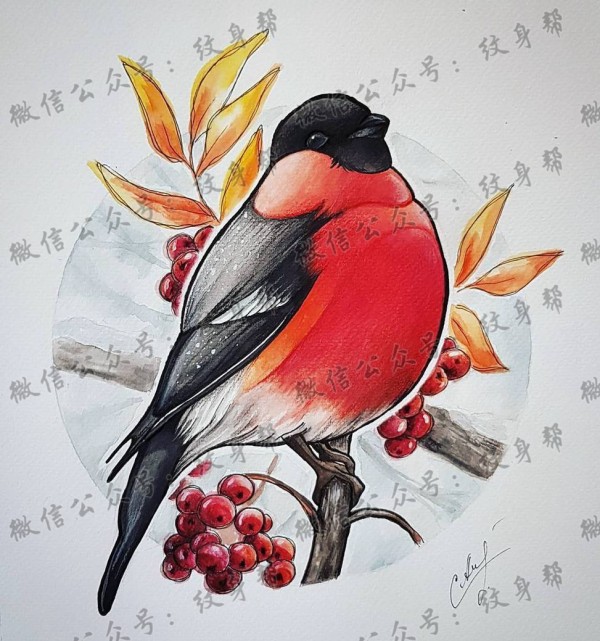 色彩小鸟纹身手稿
