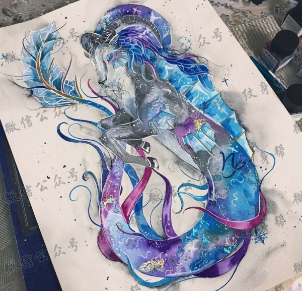 色彩摩羯座纹身手稿