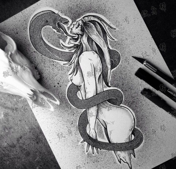 蛇女人纹身手稿