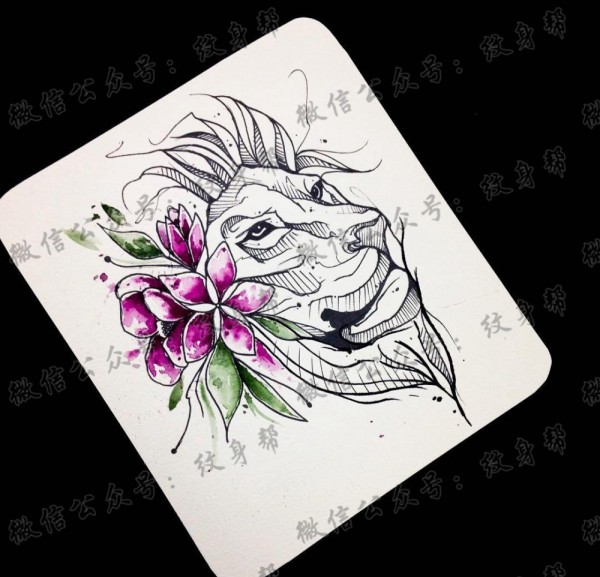 狮子花纹身手稿