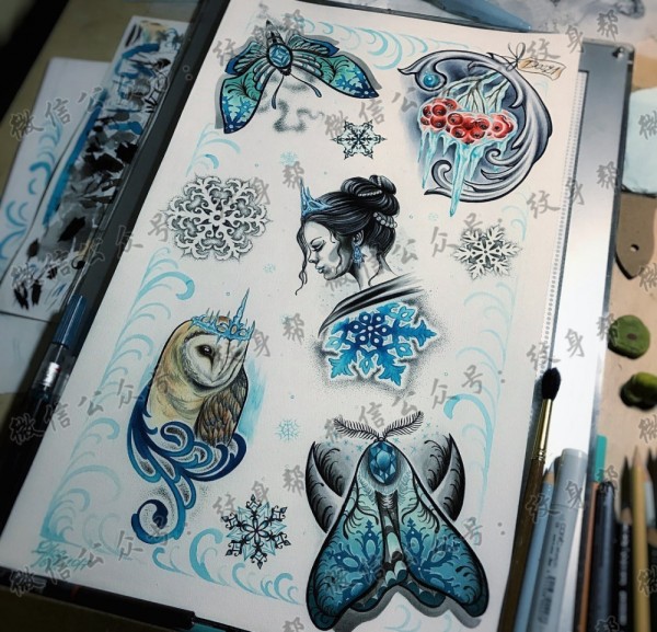 女生喜爱的简单手绘纹身图案来自于纹身师安雅