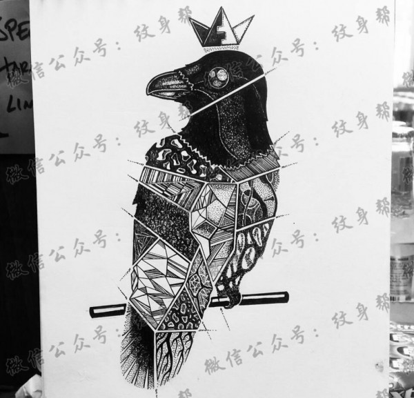 黑灰乌鸦几何纹身手稿