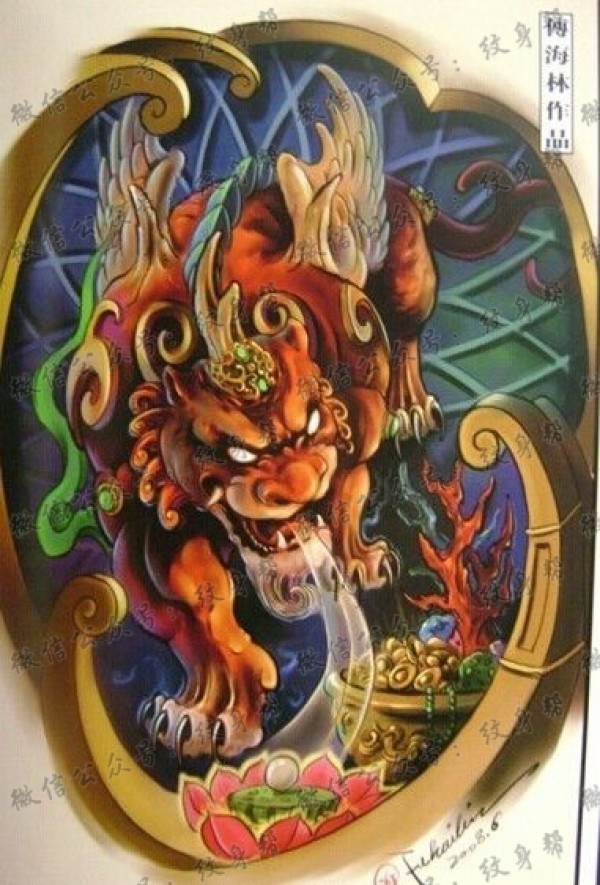 半甲唐狮手稿 传统的9款唐狮主题半甲纹身手稿图片