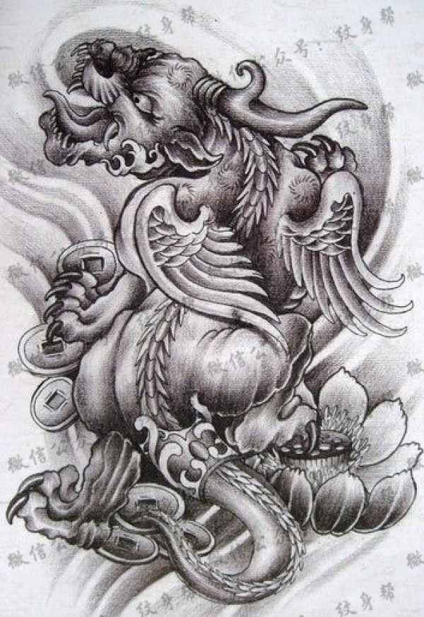 半甲唐狮手稿 传统的9款唐狮主题半甲纹身手稿图片