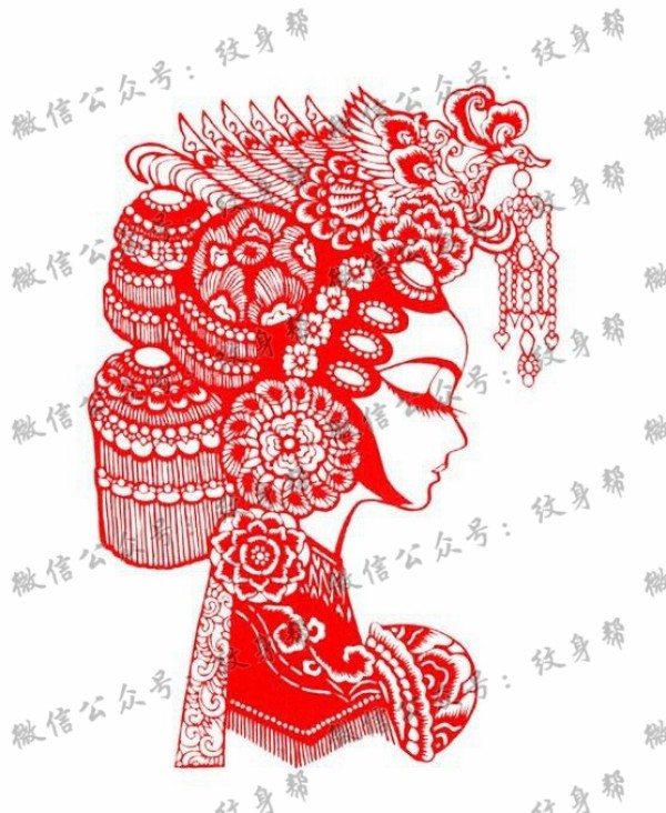 红色喜庆新娘纹身手稿素材