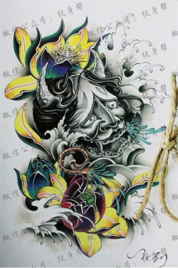 半甲唐狮手稿 传统的9款唐狮主题半甲纹身手稿图片