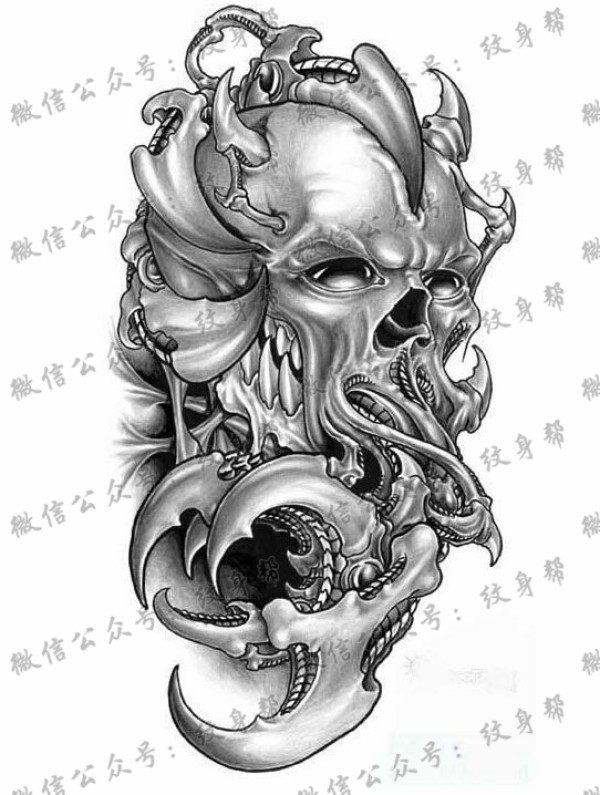 恐怖3d骷髅纹身手稿素材