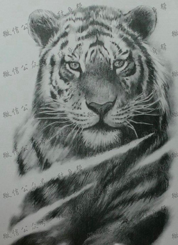 凶猛的下山虎纹身手稿素材